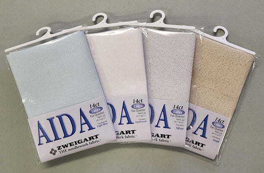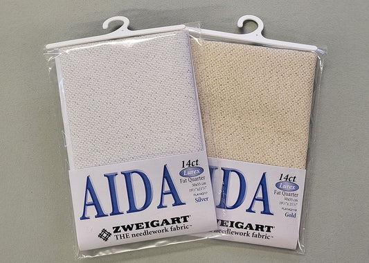 Zweigart Christmas 14ct Lurex Aida Pack - Silver & Gold Fat Quarters - SAVE 30% - FLA14QSG