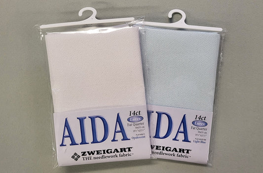 Zweigart Christmas 14ct Lurex Aida Pack - Opalescent & Light Blue Fat Quarters - SAVE 30% - FLA14QOB