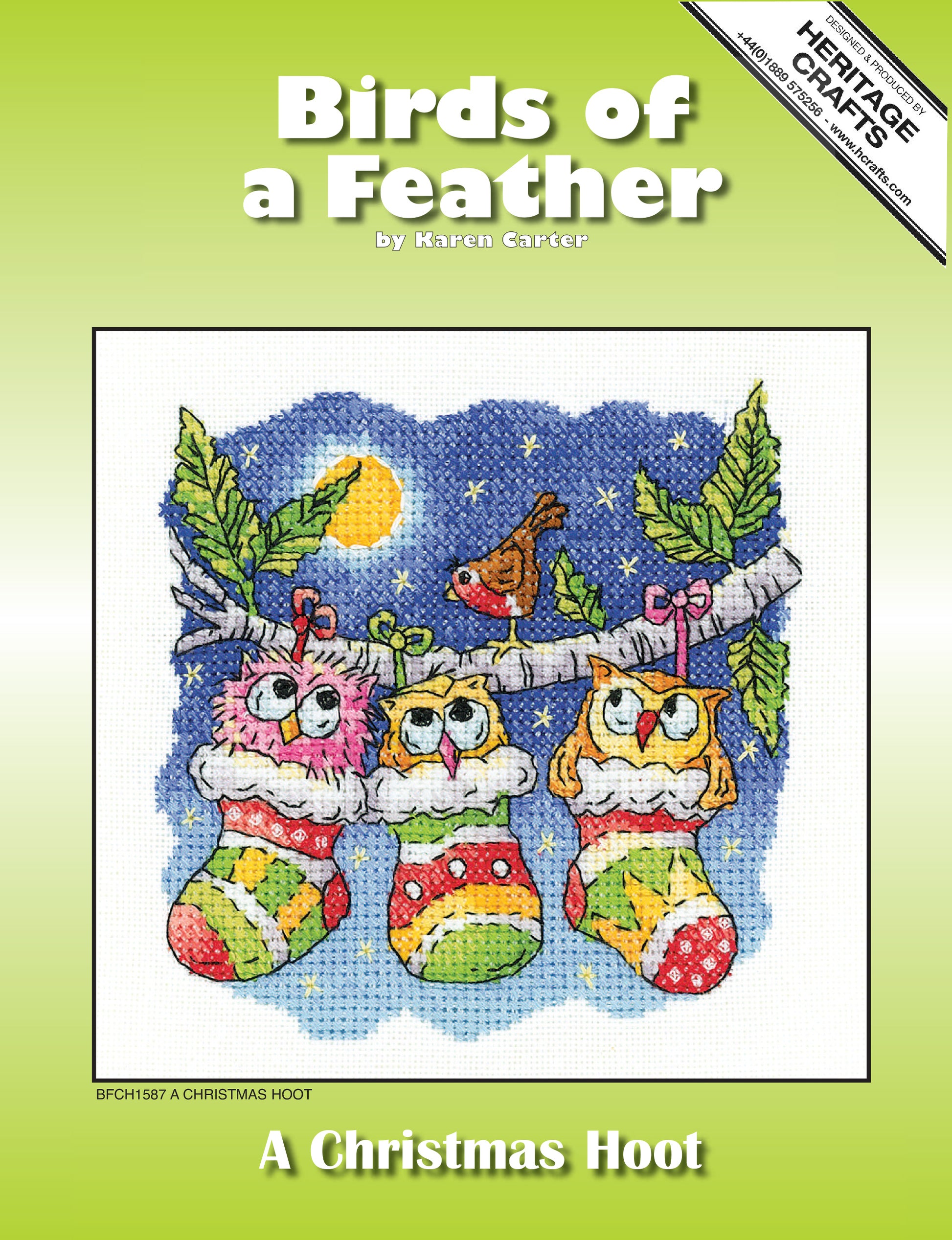 A Christmas Hoot cross stitch kit by Karen Carter.