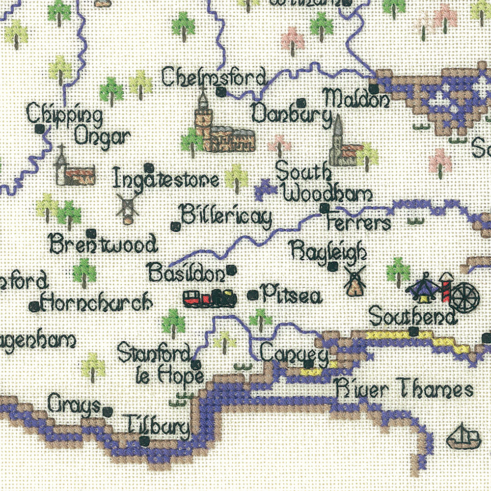 This highly detailed cross stitch map by Susan Ryder includes an alphabet chart so you can customize your cross stitch maps with favourite place names.