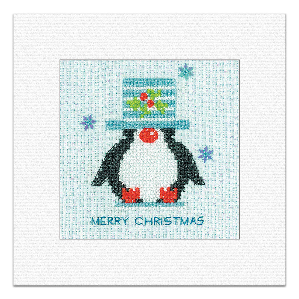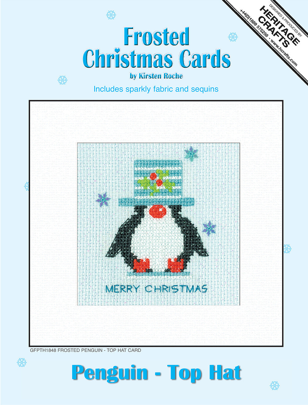 Frosted Penguin Top Hat Christmas Card cross stitch kit - GFPTH1848