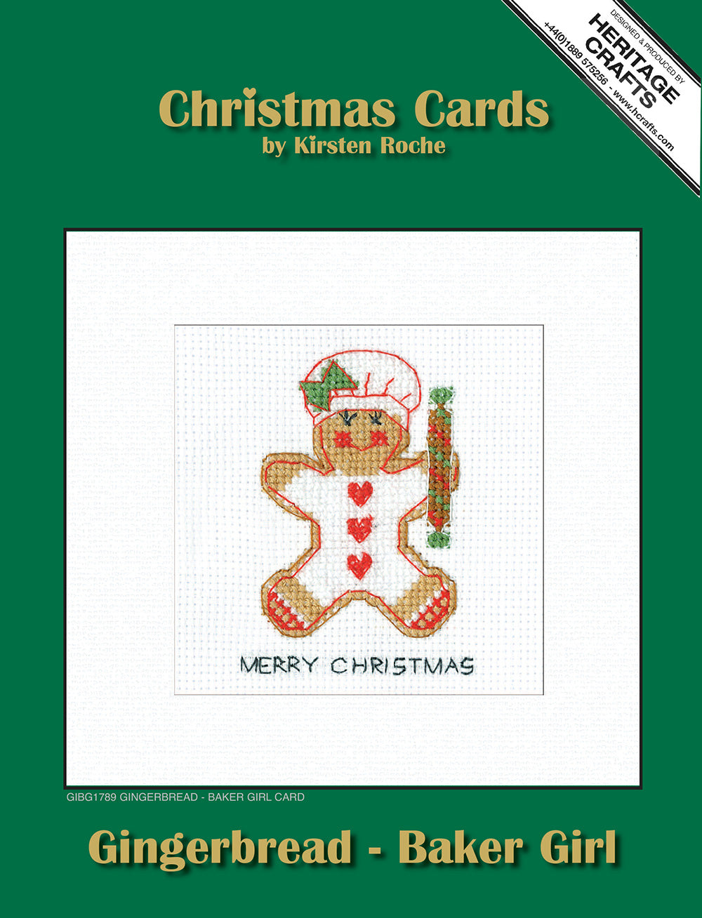 Gingerbread Baker Girl - Gingerbread Christmas Card cross stitch kit from Heritage Crafts