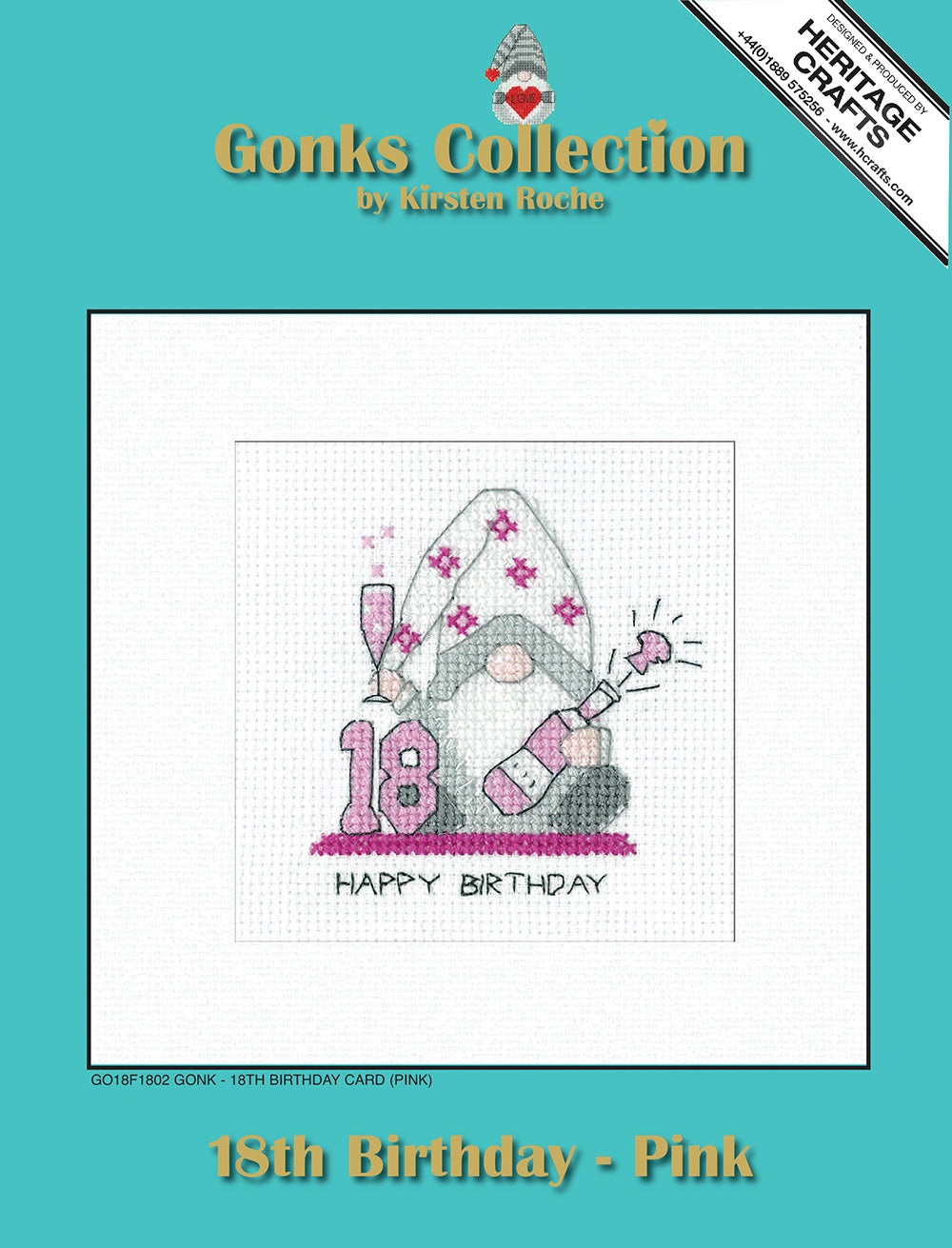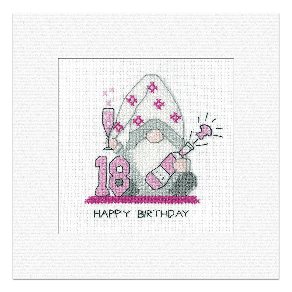Gonk 18th Birthday Card cross stitch kit (Pink) - GO18F1802