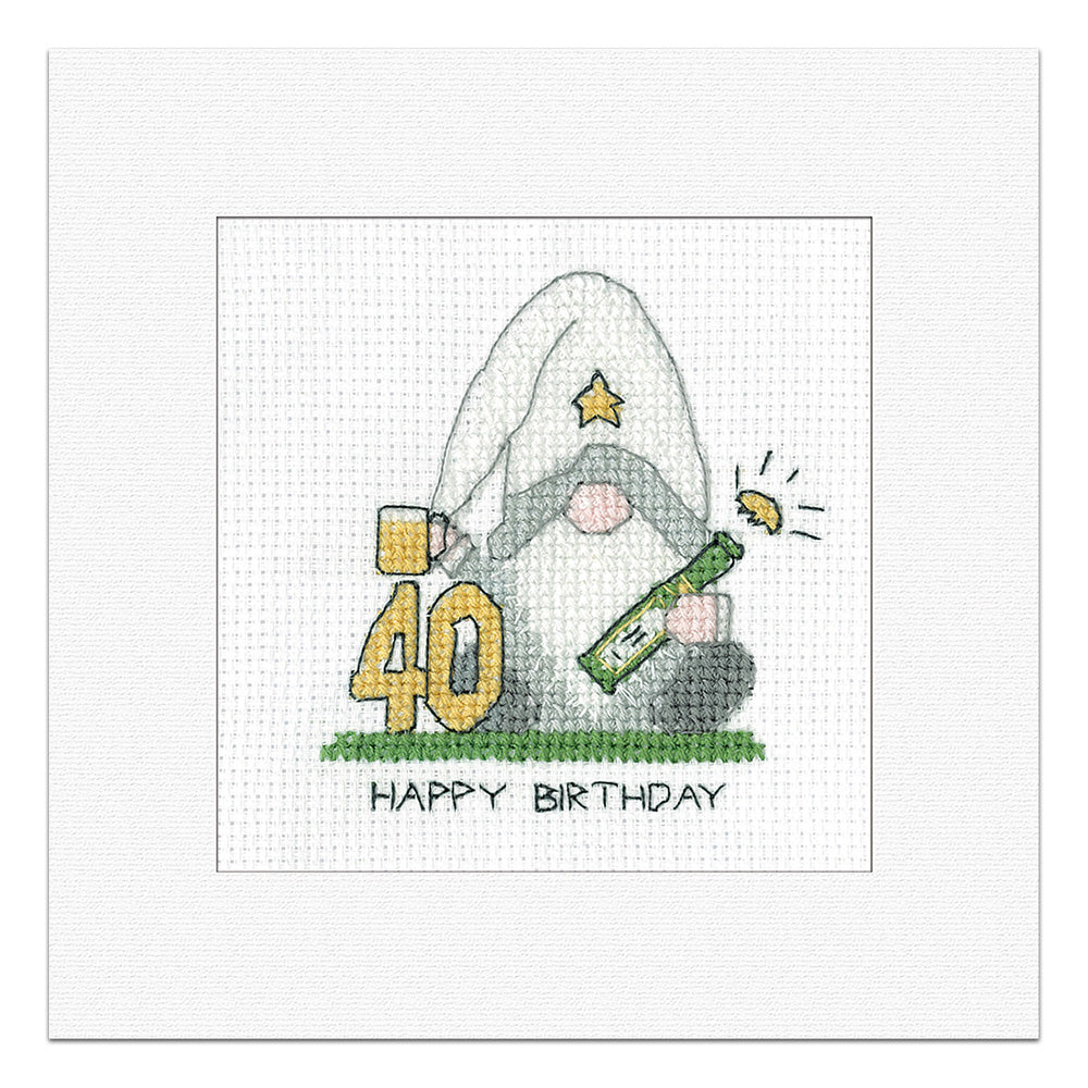 Gonk 40th Birthday Card cross stitch kit (Green) - GO40M1809
