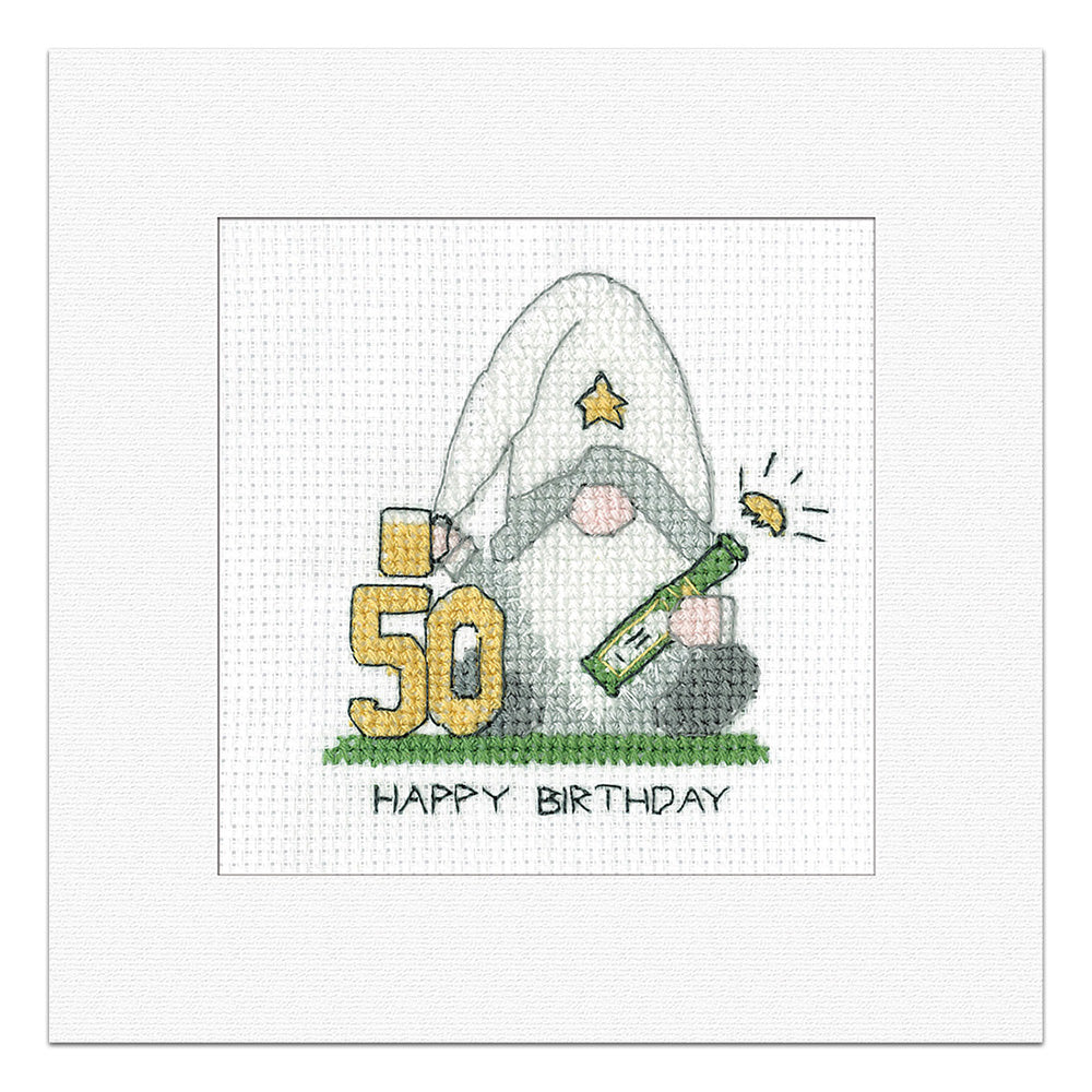 Gonk 50th Birthday Card cross stitch kit (Green) - GO50M1811