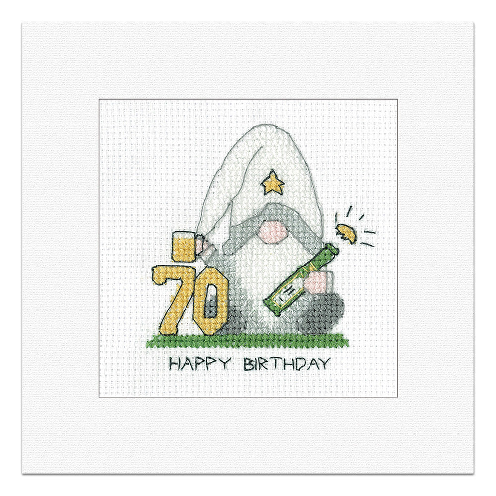 Gonk 70th Birthday Card cross stitch kit (Green) - GO70M1815