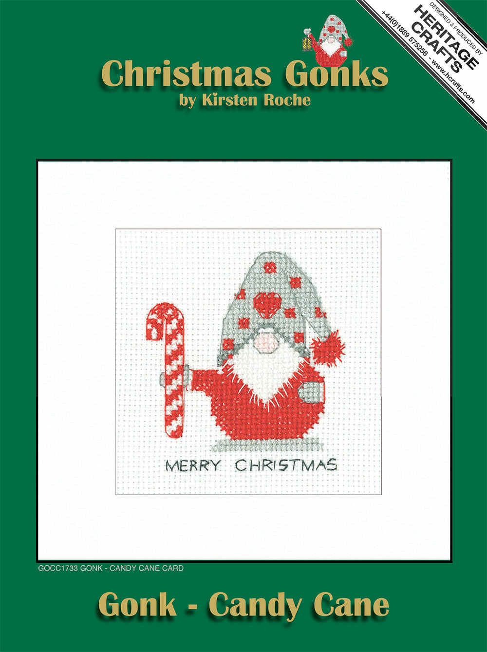 Gonk Candy Cane Christmas Card cross stitch kit from Heritage Crafts