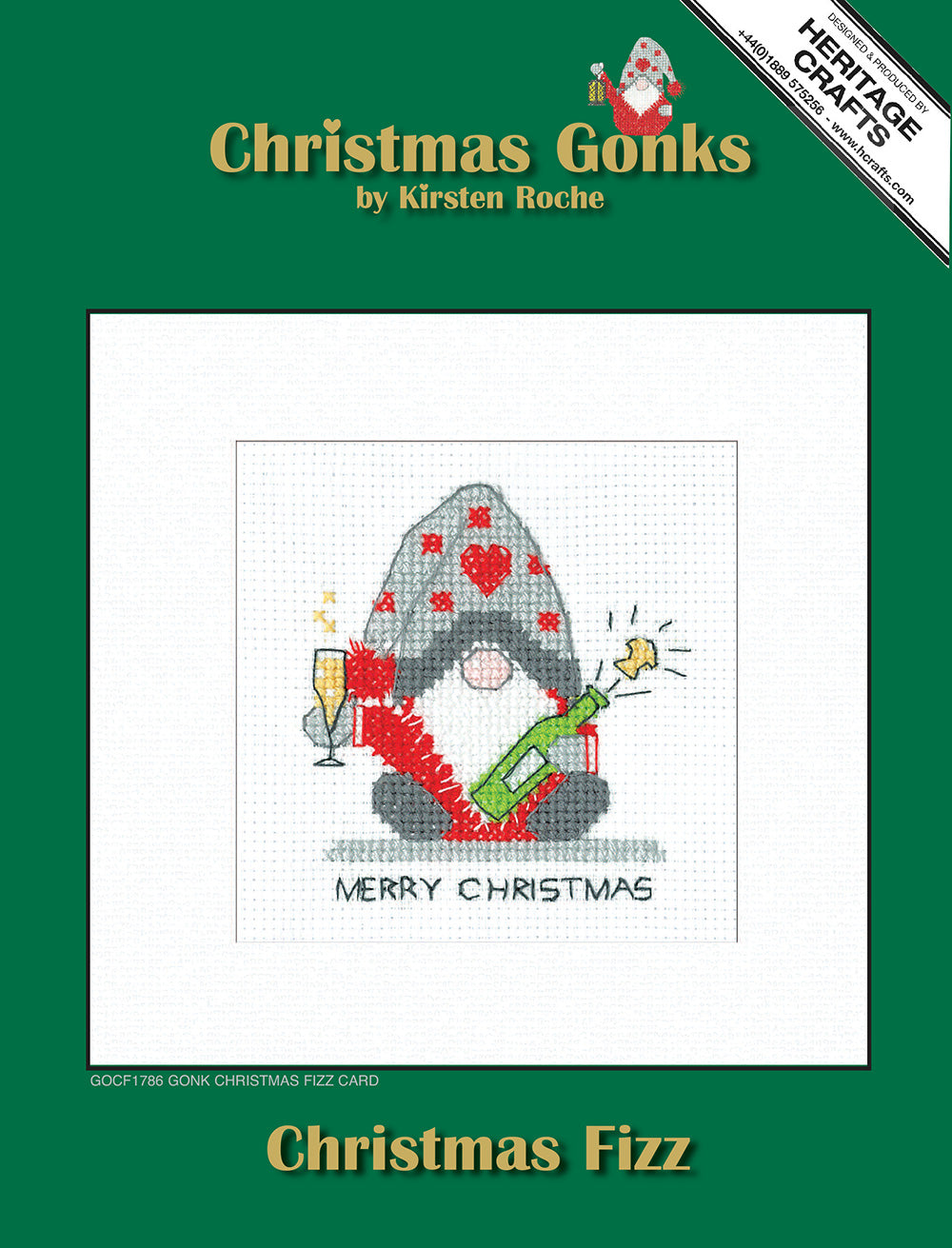 Gonk Christmas Fizz Christmas Card cross stitch kit from Heritage Crafts