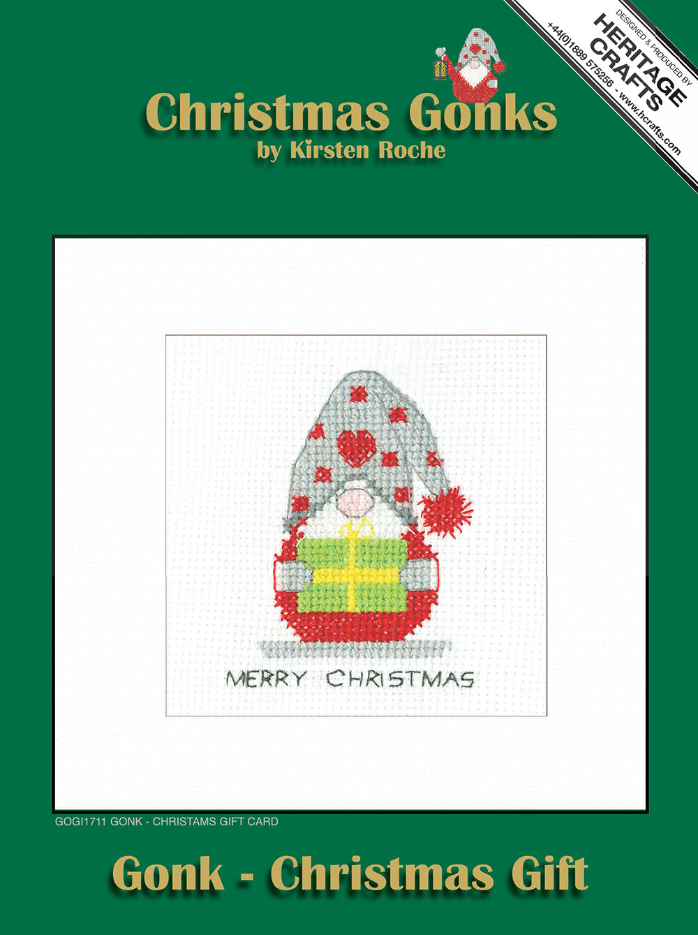 Gonk Christmas Gift Christmas Card cross stitch kit from Heritage Crafts