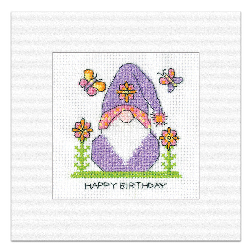 Gonk Birthday Flowers - Birthday Card cross stitch kit from Heritage Crafts