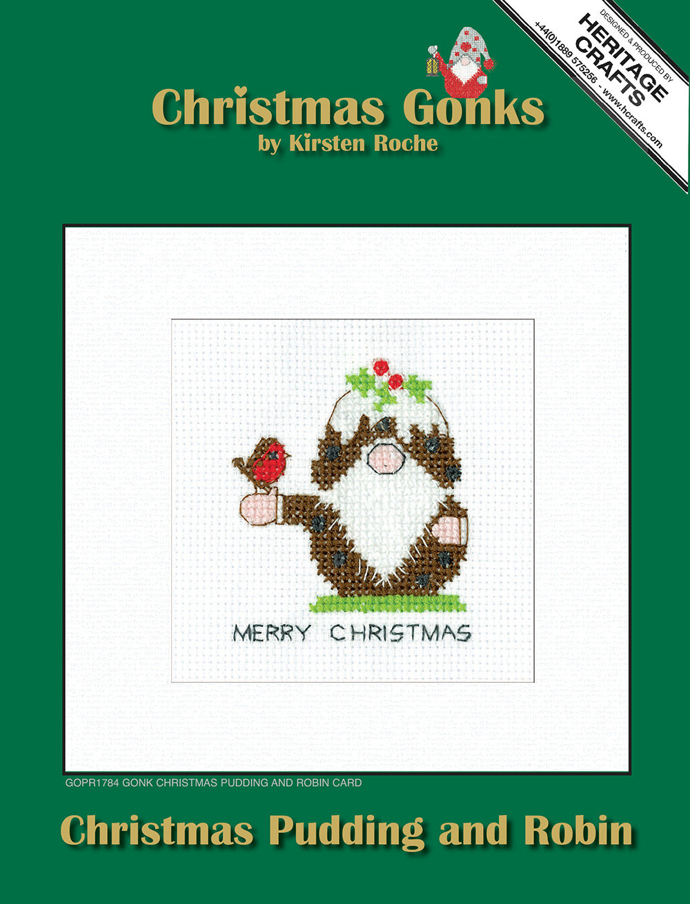 Gonk Pudding & Robin Christmas Card cross stitch kit from Heritage Crafts