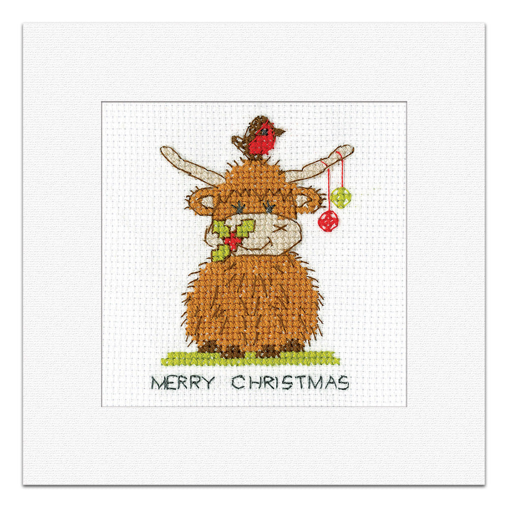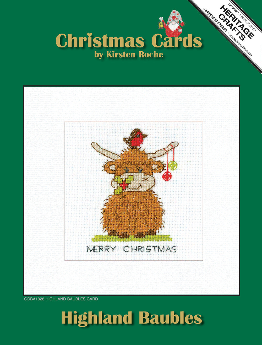 Highland Baubles - Highland Cow Christmas Card cross stitch kit from Heritage Crafts