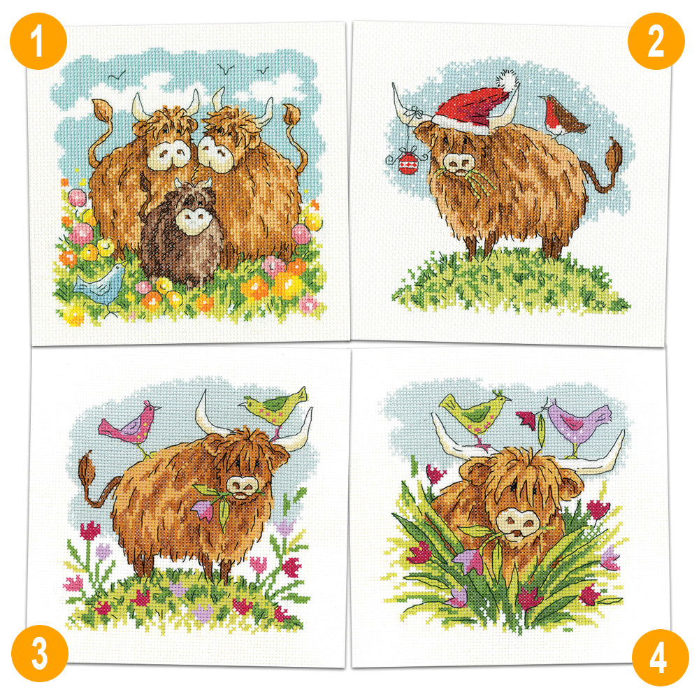 Each kit contains : Zweigart 14ct Aida fabric, DMC stranded cottons sorted on to numbered cards, a needle, and clear charts and instructions.