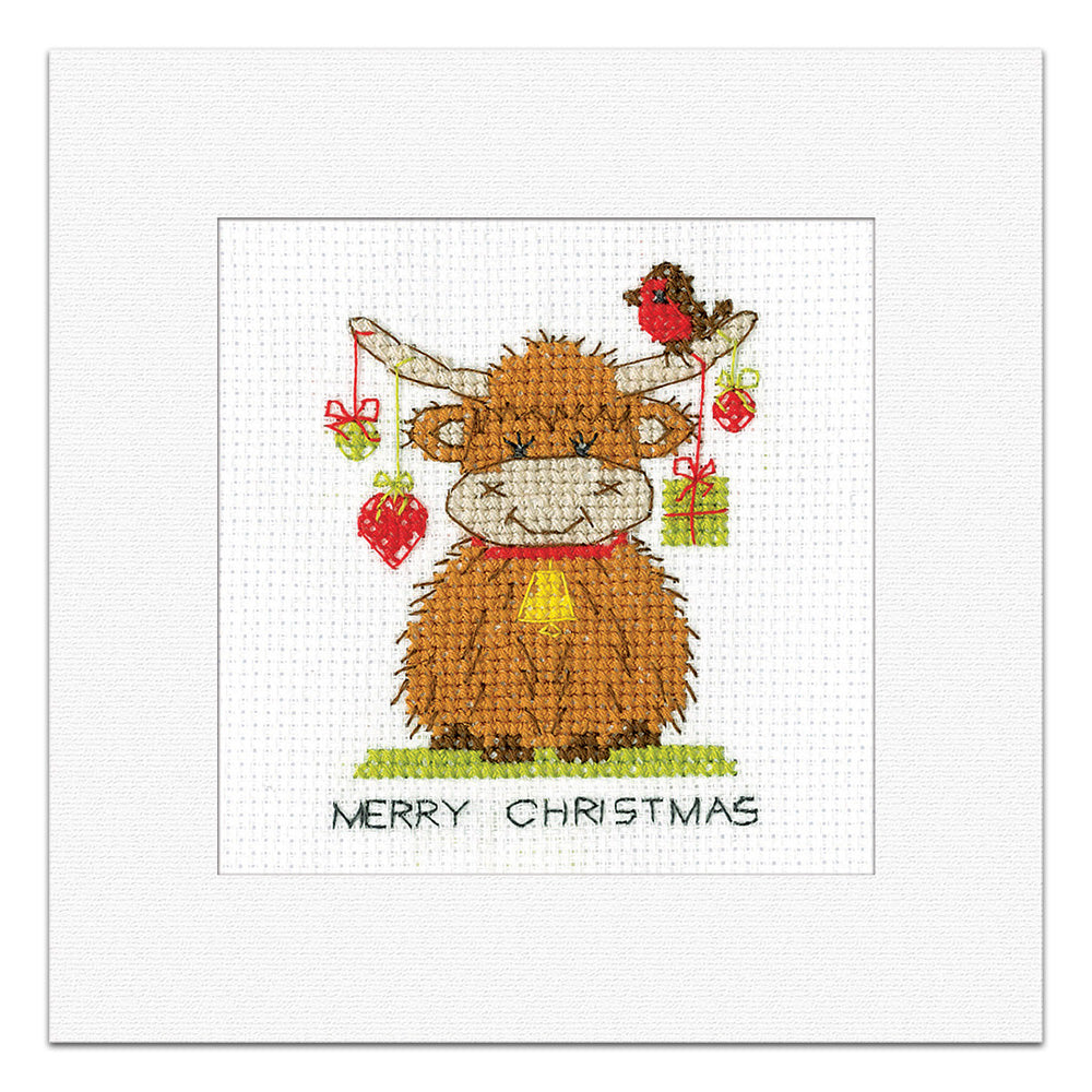 Highland Heart - Highland Cow Christmas Card cross stitch kit from Heritage Crafts