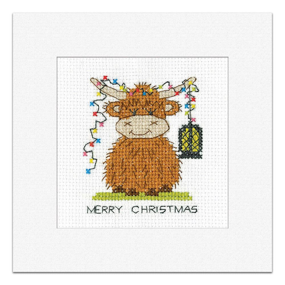 Highland Lantern - Highland Cow Christmas Card cross stitch kit from Heritage Crafts