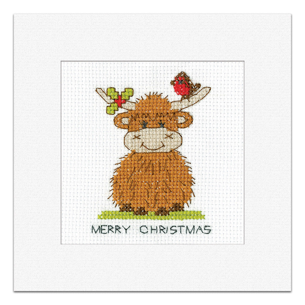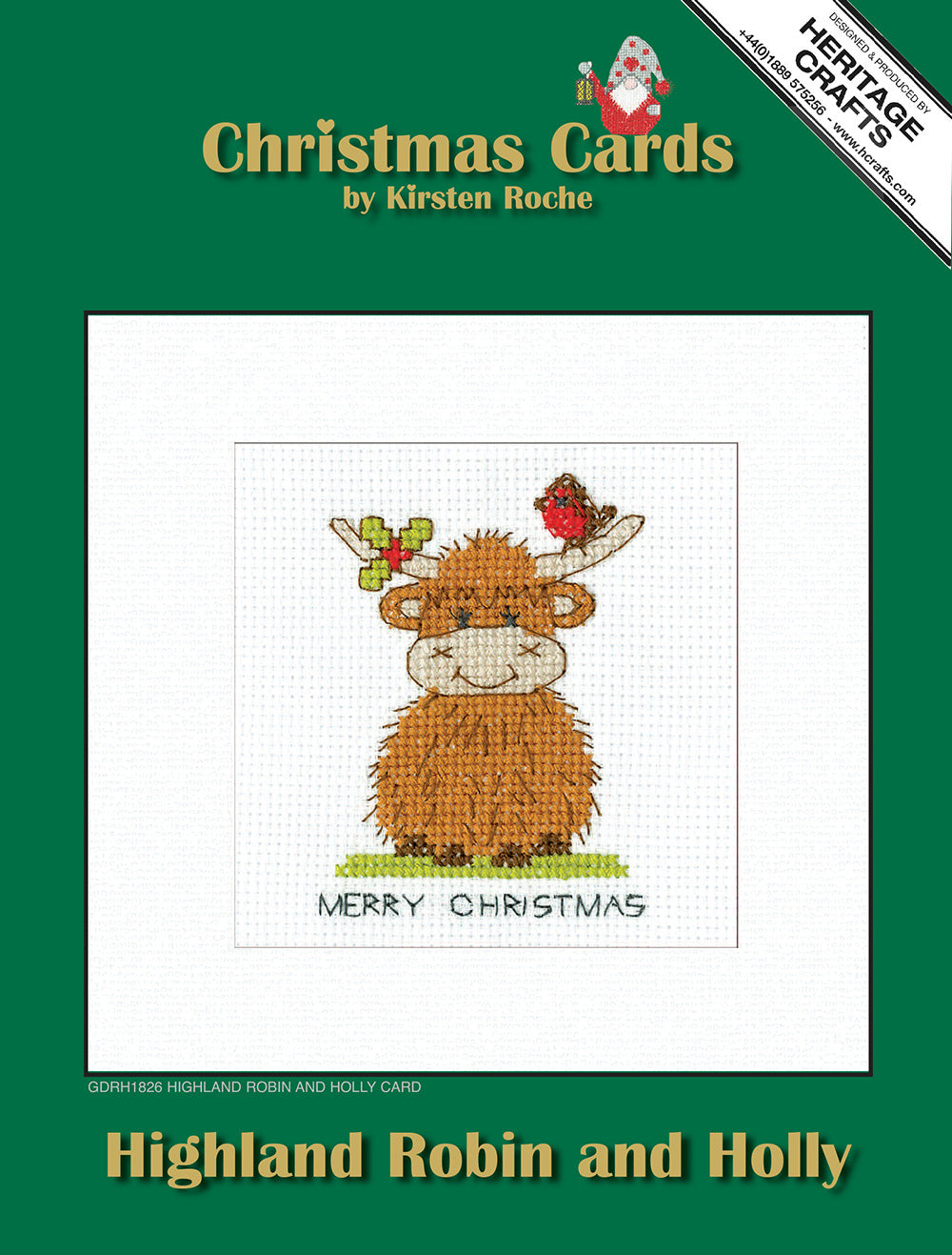 Highland Robin & Holly - Highland Cow Christmas Card cross stitch kit from Heritage Crafts