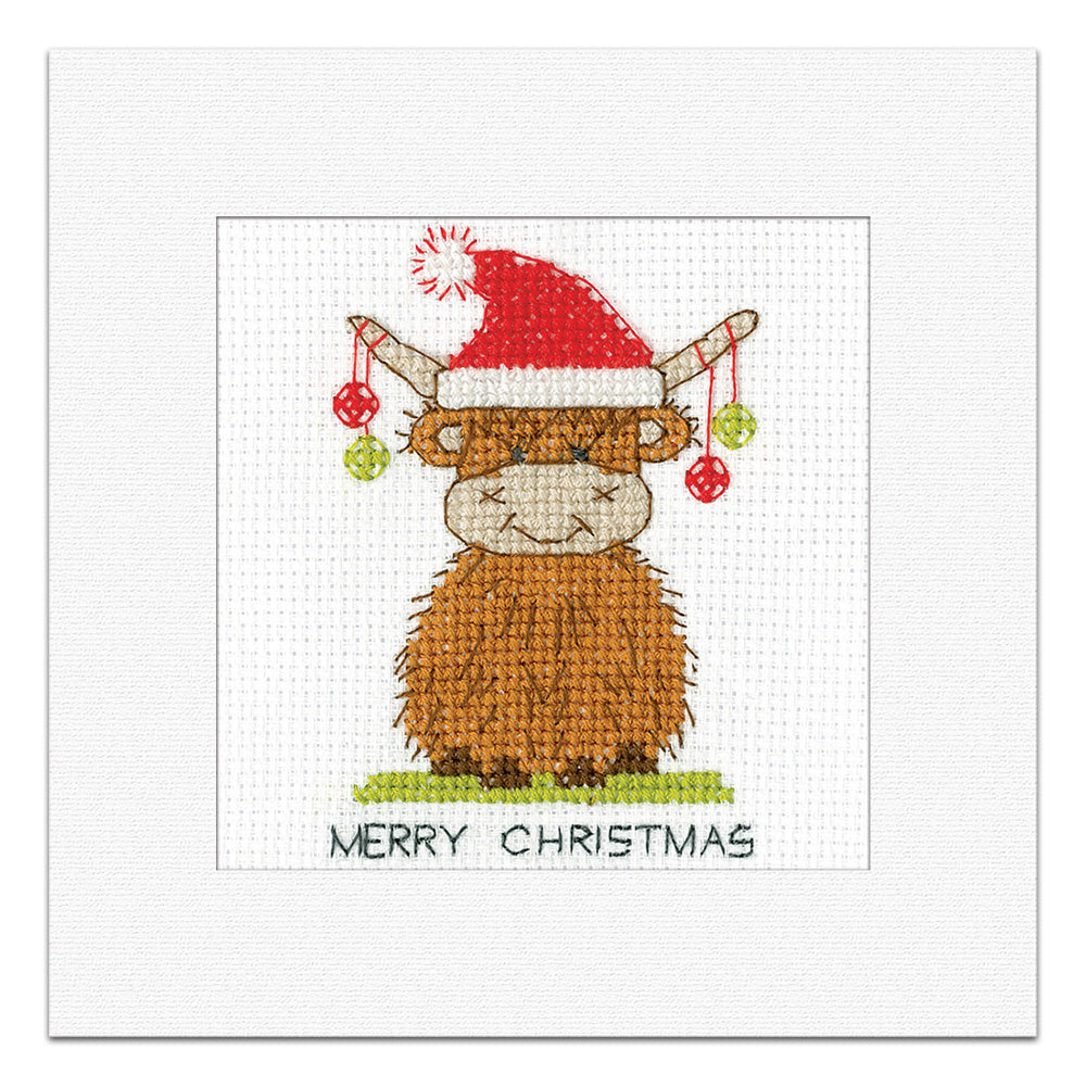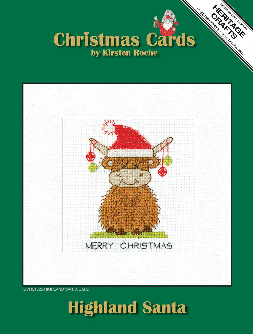 Highland Santa - Highland Cow Christmas Card cross stitch kit from Heritage Crafts