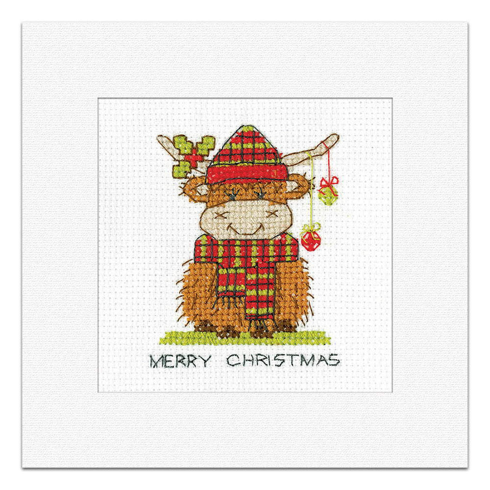 Highland Tartan - Highland Cow Christmas Card cross stitch kit from Heritage Crafts