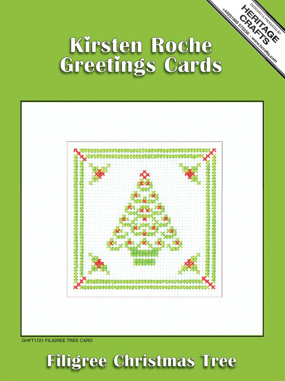 Holly Filigree Tree Christmas Card cross stitch kit by Kirsten Roche from Heritage Crafts