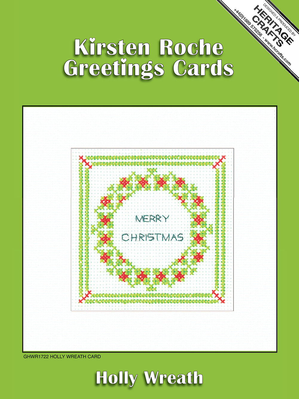 Holly Filigree Wreath Christmas Card cross stitch kit by Kirsten Roche from Heritage Crafts