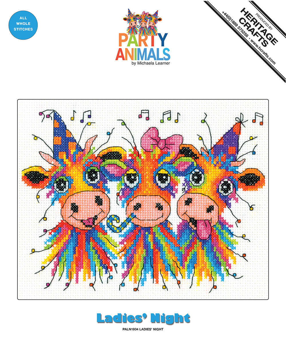 A 'Party Animals' cross stitch kit by Michaela Learner.