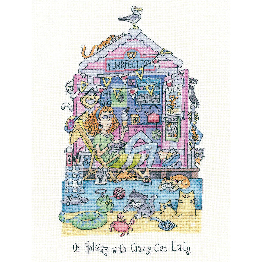 On Holiday with Crazy Cat Lady cross stitch chart pack - CROH1399C