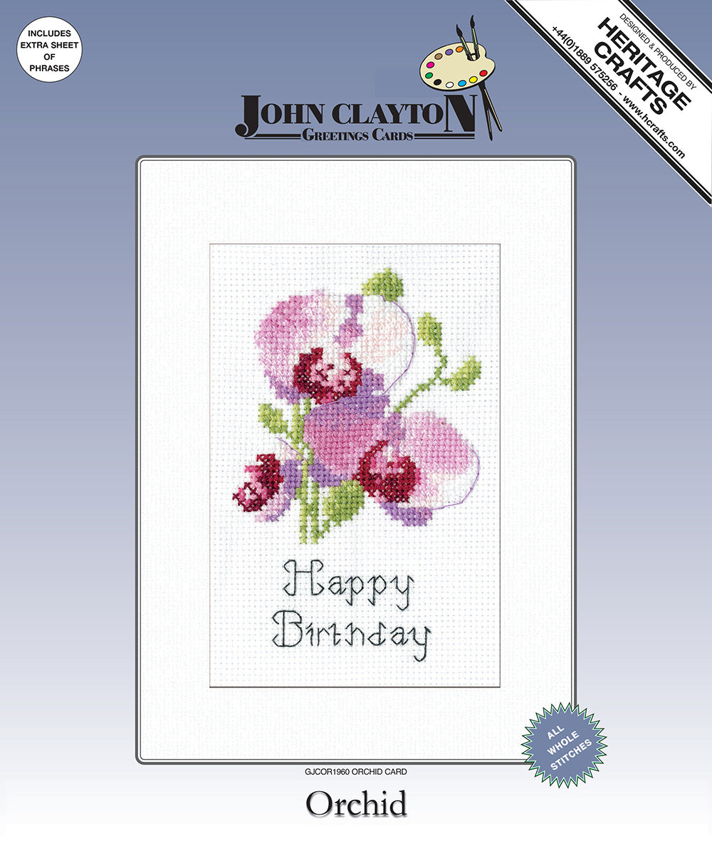 Kit contains : Zweigart 14ct Aida fabric, DMC stranded cottons pre-sorted onto a numbered card, a needle, and clear charts and instructions, a card and an envelope.