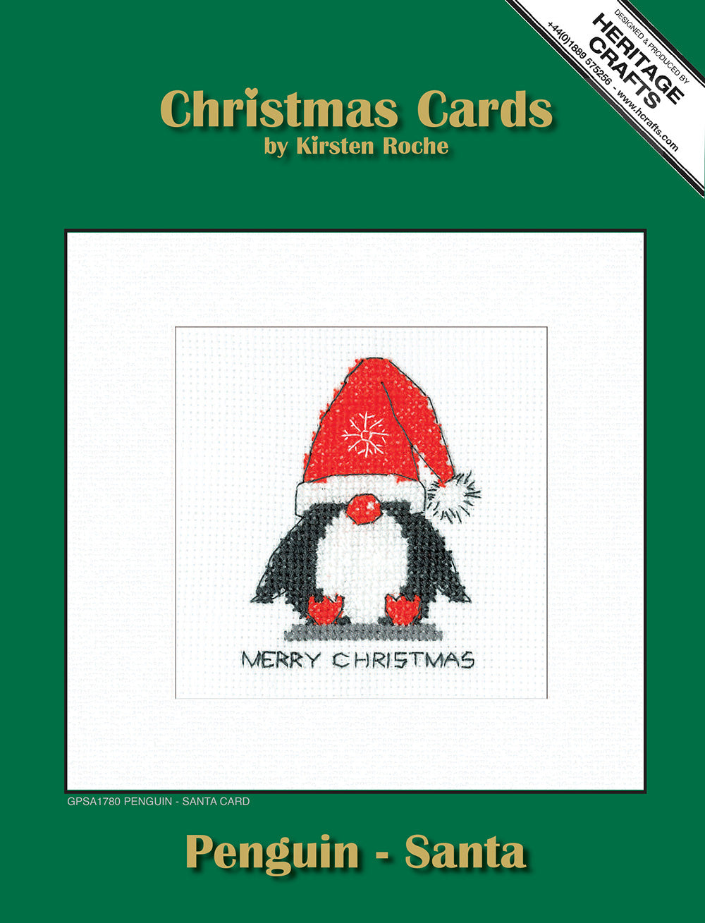 Penguin Santa Christmas Card cross stitch kit from Heritage Crafts