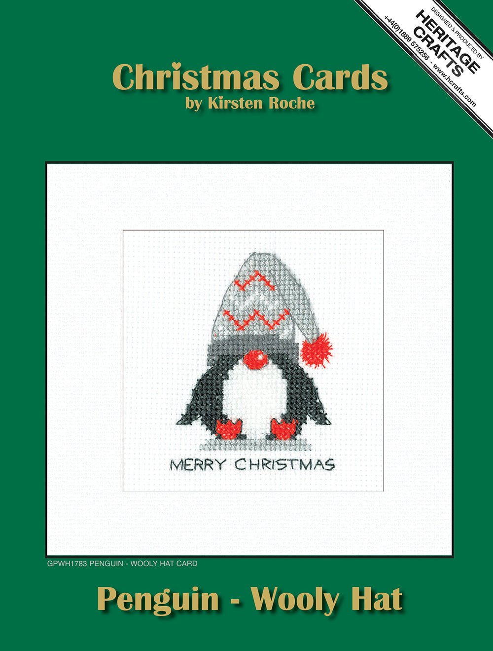 Penguin Woolly Hat Christmas Card cross stitch kit from Heritage Crafts