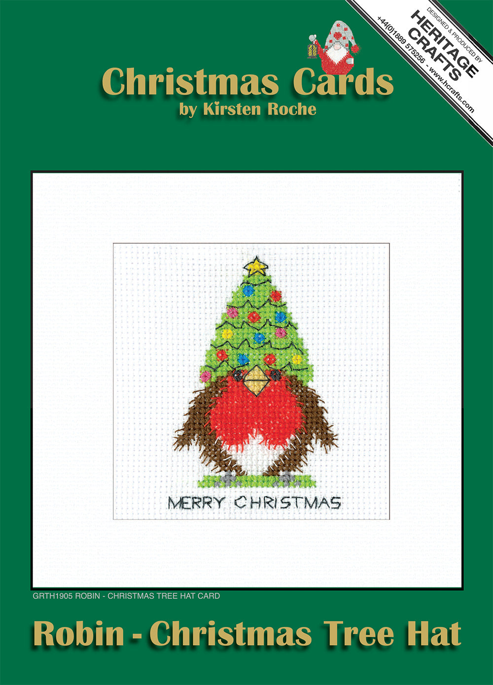 Robin Christmas Tree Hat Greeting Card cross stitch kit - GRTH1905