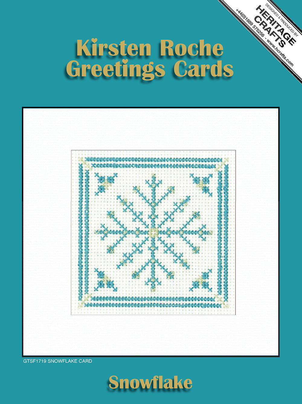 Teal & Silver Snowflake Christmas Card cross stitch kit by Kirsten Roche from Heritage Crafts