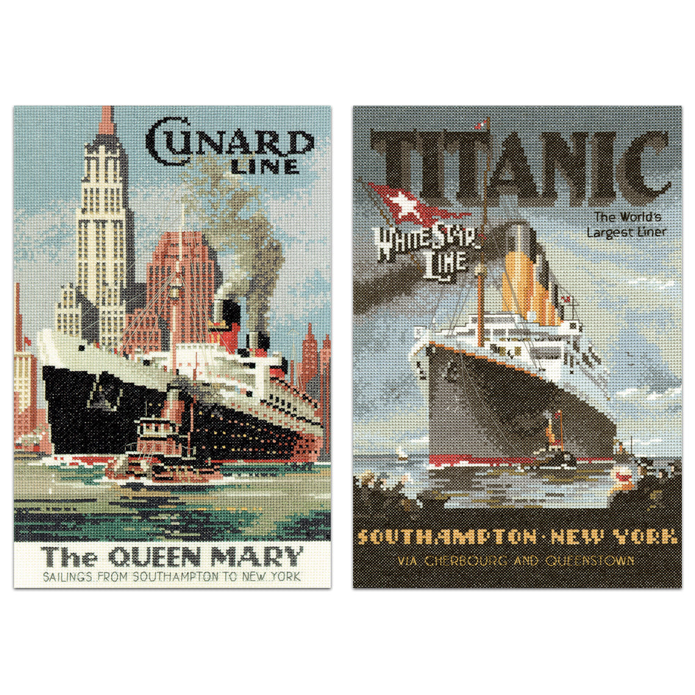 Titanic & Queen Mary, Pair of cross stitch kits - NTT368 & NQM337