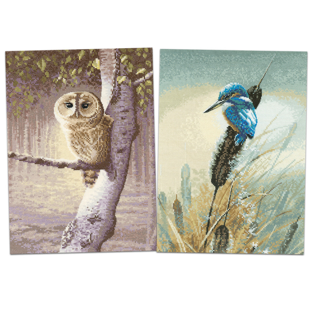 Two Cross Stitch Kits by Warwick Higgs - Night Watchman & Little Fisher