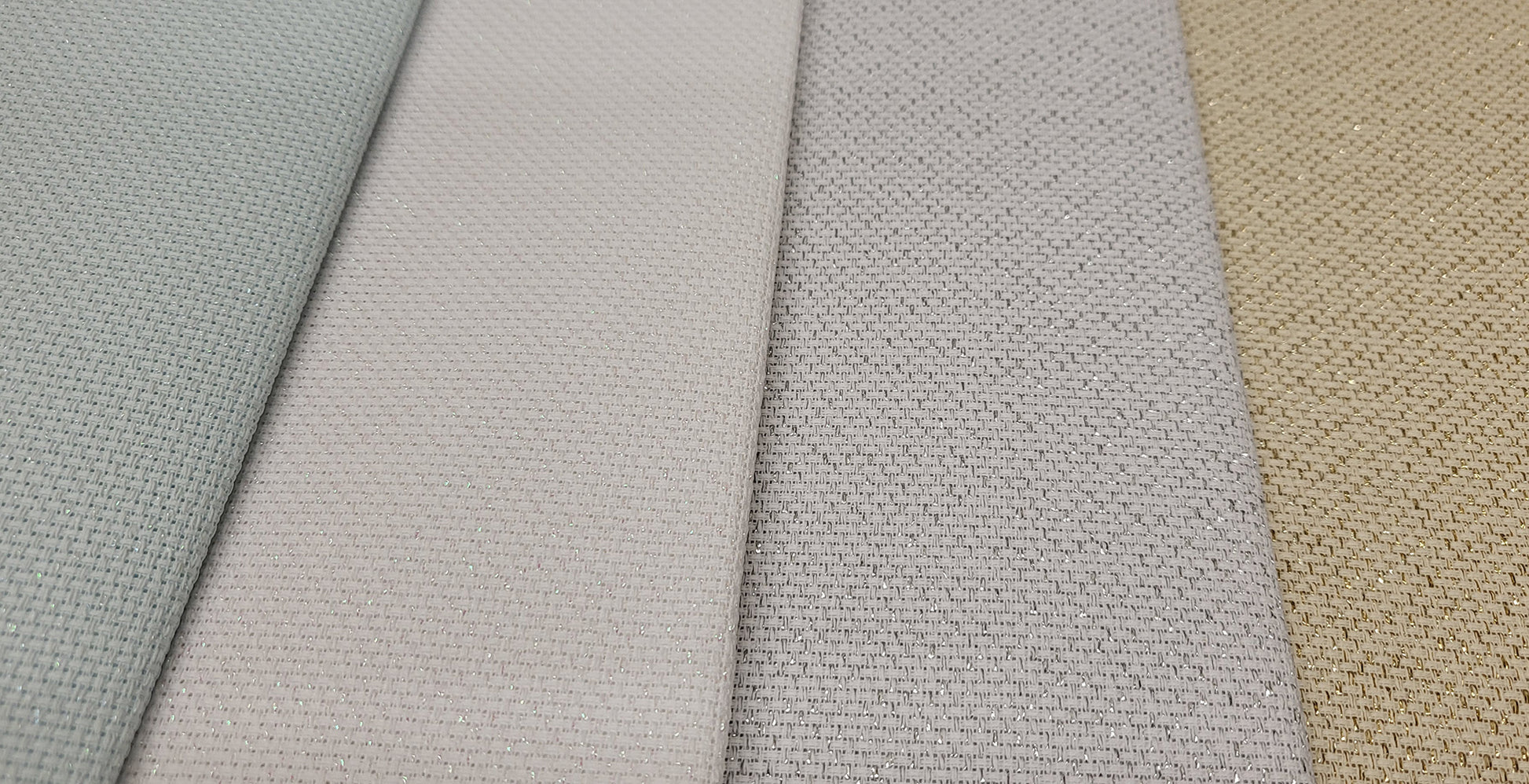 Four fat quarters of Zweigart Christmas 14ct Lurex Aida: